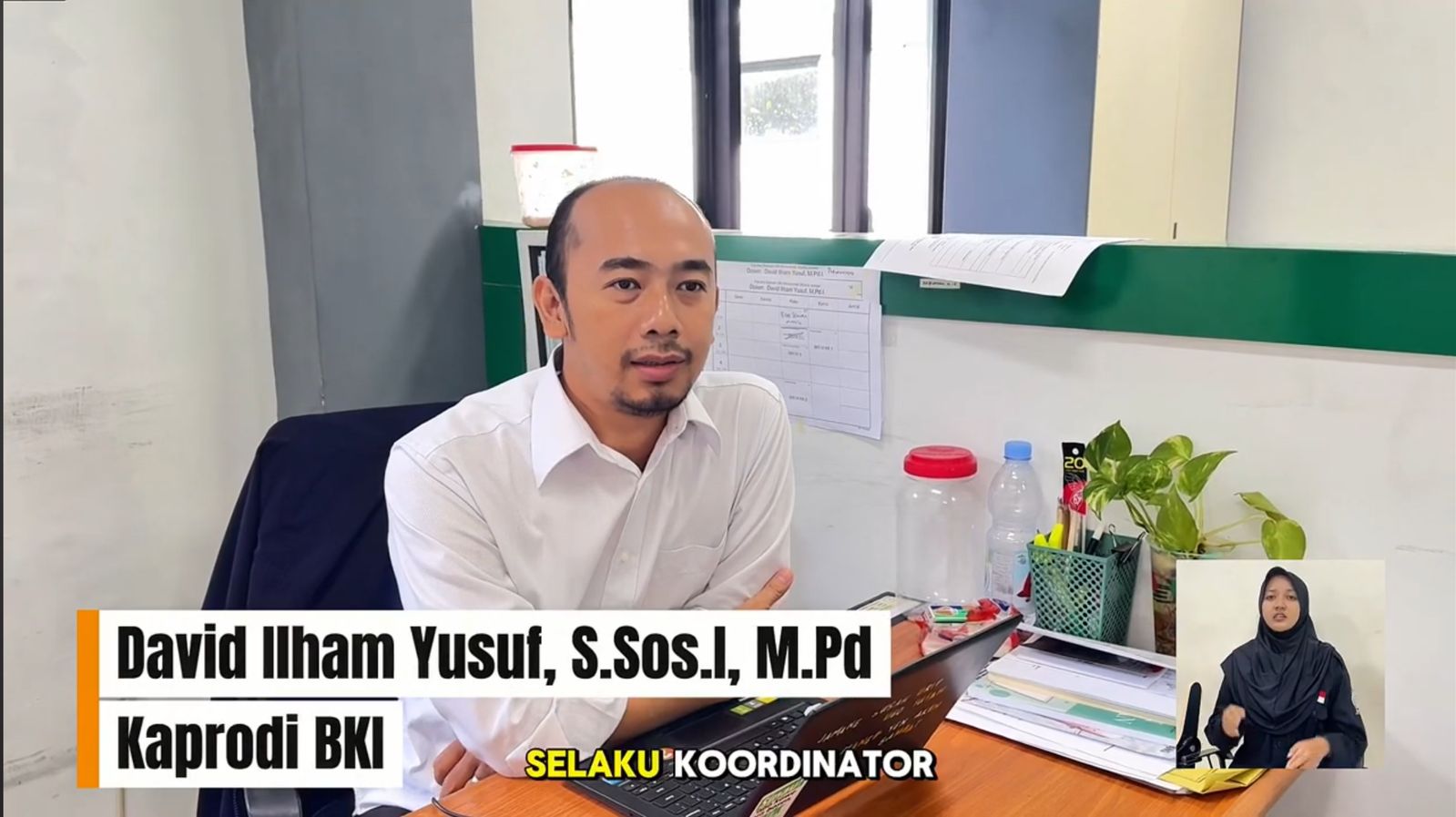 Kemudian Bapak David Ilham Yusuf, S.Sos.I, M.Pd, selaku Kaprodi BKI, yang memperkenalkan diri dan mengajak untuk bergabung di Prodi Bimbingan dan Konseling Islam, Fakultas Dakwah Universitas Islam Negeri Kiai Haji Ahmad Siddiq Jember. Beliau menjelaskan visi prodi BKI dan juga menjelaskan profil lulusan prodi BKI.